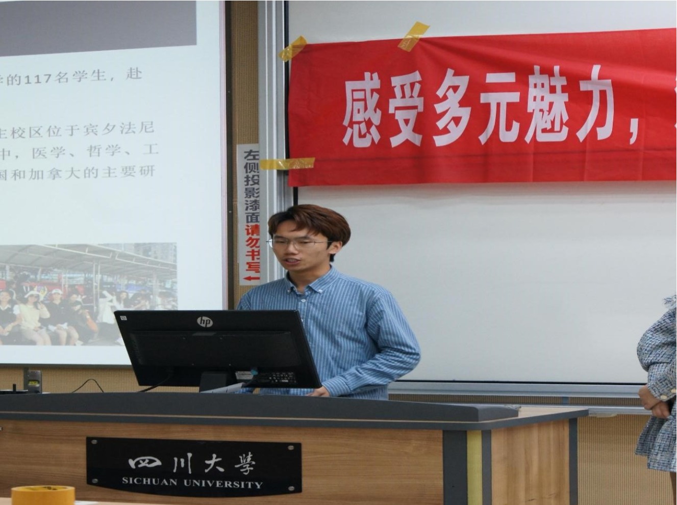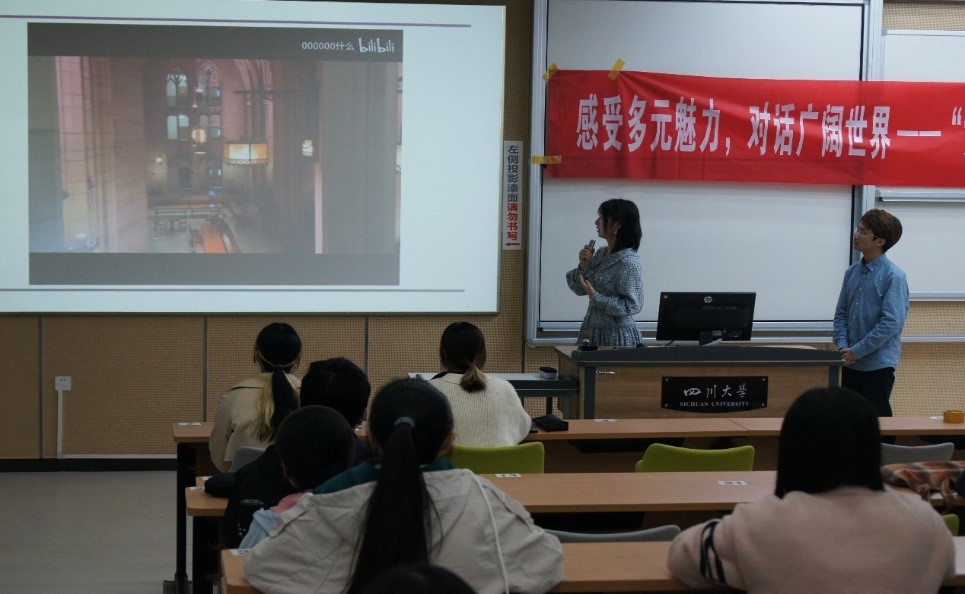 参加英国牛津大学奥尔立学院项目的李佳宁,李邵瞳同学与参加匹兹堡美国东部新英格兰体验项目的刘雨鑫,欧阳科同学为川大学子分享了访学经验与收获。