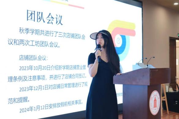 杨琴老师总结了本学年团队建设和由创小管组织的学生双创活动开展情况,感谢全体成员一年的辛苦付出与努力,表达了对所有成员美好的祝福与期盼。
