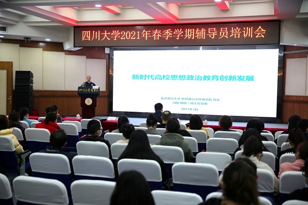 3月20日下午,北京师范大学思想政治工作研究院院长,教授、博士生导师、教育部思想政治工作司原司长冯刚莅临我校,为全校辅导员作“新时代高校思想政治教育创新发展”专题培训,学生工作相关部门及学院辅导员代表参加了本次培训。