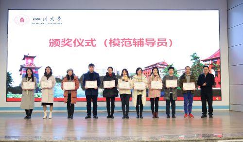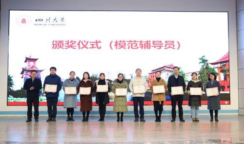 会议举行了学工系统2021年度评优表彰颁奖仪式,学工部部长陈森宣读年度表彰决定,校党委副书记郭勇为年度模范辅导员颁奖。