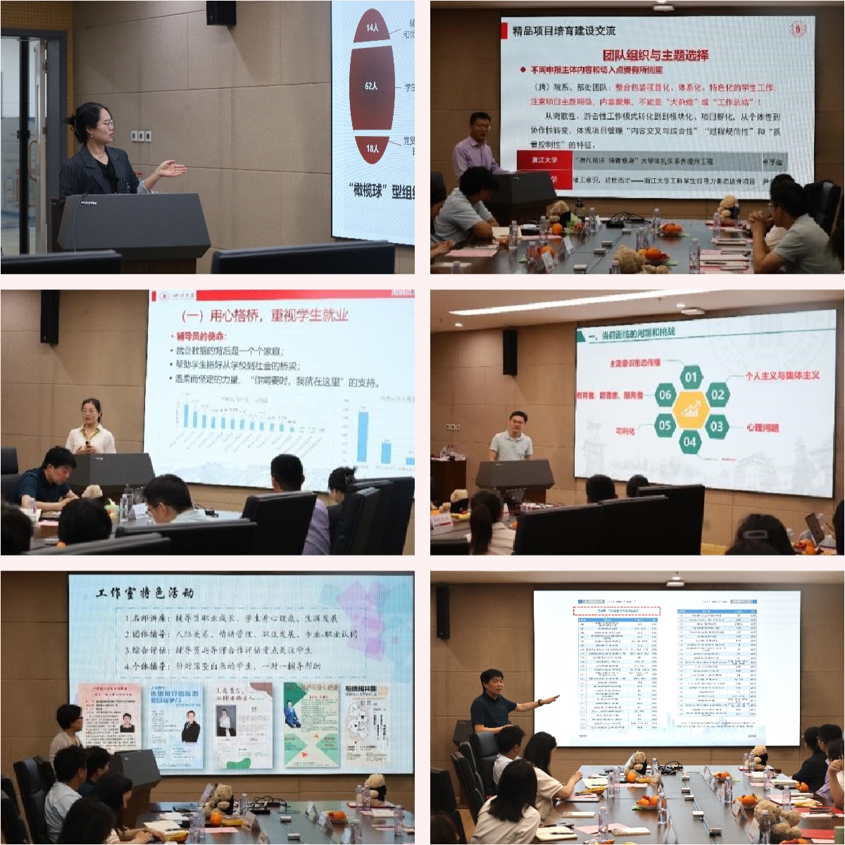 本期沙龙聚焦学生思想政治教育工作中的重点难点问题,由轻工科学与工程学院贺婷、商学院陈启胜、法学院白宝芬、电气工程学院汤博、电子信息学院何惠、网络空间安全学院黎红友等6位辅导员工作室主持人、成员,分别围绕“以辅导员工作室建设促进学生全面化与辅导员职业化双向成长”“以辅导员工作精品项目培育促职业能力提升”“辅导员促进学生高质量就业的方法与路径”“思维革新、话语更新、方法创新——‘一站式’学生社区建设背景下辅导员工作模式创新”“深耕心理细作关系——团体辅导助力学生成长成才”“高校辅导员工作室申报和内容建设”等主题进行经验交流分享。
