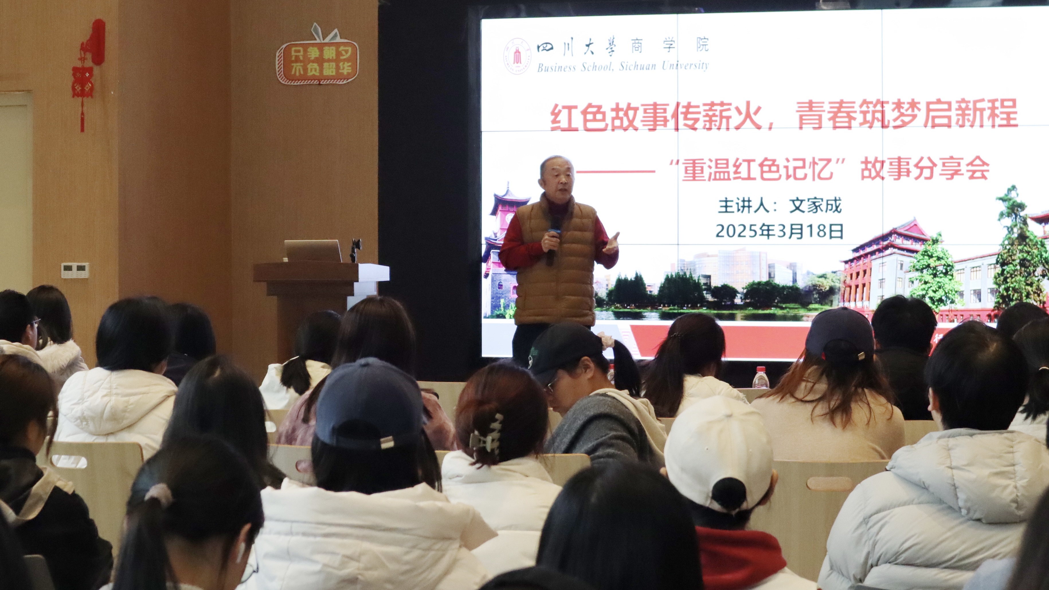 提升学生政治素养,筑牢理想信念根基。邀请院党委领导进行“全面深化改革,推进中国式现代化”专题授课,系统解读二十届三中全会核心要义;依托班团组织开展“深入学习两会精神,共谋发展新篇章”专题学习,深化国情认知;邀请我校退休教师以及百川宣讲团成员开展20余场关于新时代党的理论创新成果和重大方针政策的宣讲。通过系统开展专题学习,激发学生将理论与实践相结合的内生动力,引导学生在实践中践行青春使命。