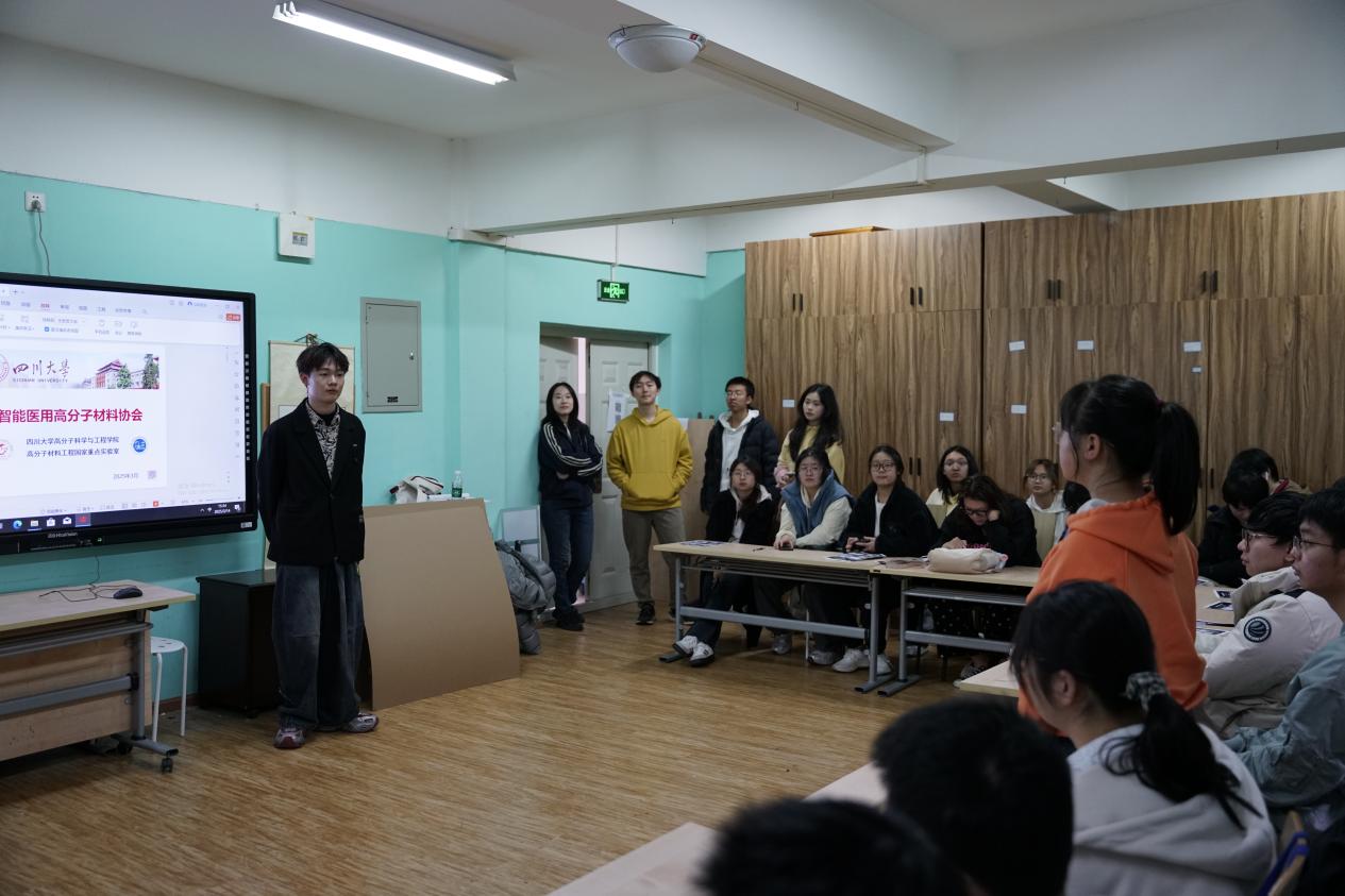 “社区微论坛”主动打破学科壁垒,高分子科学与工程学院学术型社团与华西临床医学院、化学工程学院等兄弟院系深度联动,构建跨学科协同创新网络,开展了仿生柔性材料、护肤医疗科技等对接大创项目、企业课题的多样延伸实践,将实验室研究延伸至真实应用场景,也面向社区学生带来了跨学科交叉融合的魅力,开启学生全面发展、探索多元世界的大门。
