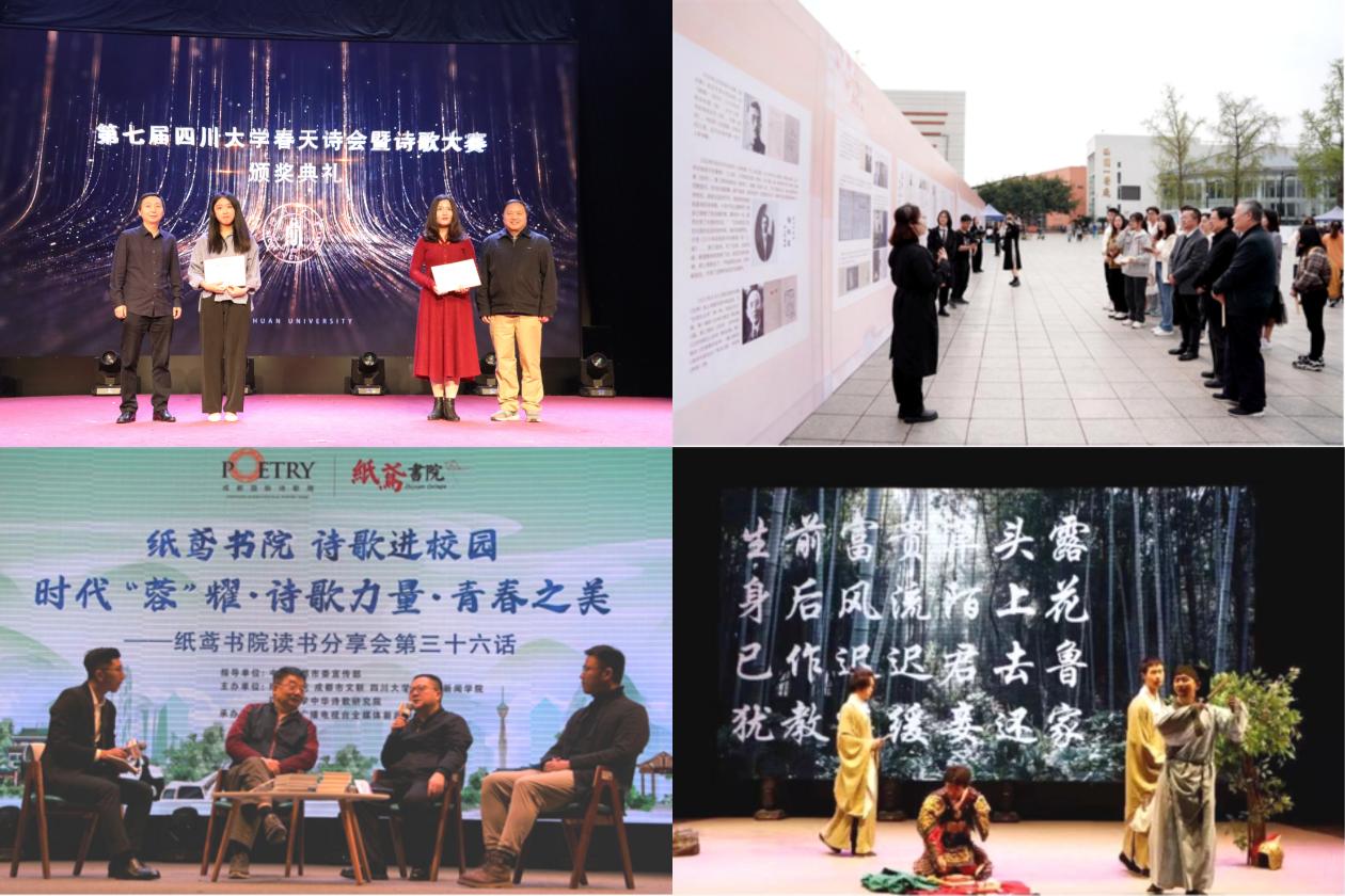 以“春天诗会”为纽带,创新打造“创作-展陈-研讨-演绎”的文脉浸润场域,让中华优秀传统文化在青年群体中焕发新生。以赛促创,激发青年创作活力。通过原创诗歌征集评选活动,激发文理工医各学科3200 余名青年学子的创作热情,共收获超 5000 件原创诗歌作品,成为青年表达自我、传承文脉的独特载体。以展鉴史,触摸诗歌历史脉络。依托“刘福春中国新诗文献馆”,举办诗歌文化普及展览,集中展示诗刊、诗报、诗论集等珍贵史料,组建专业学生志愿讲解队,通过生动讲解,带领师生沉浸式感受诗歌文化的深厚底蕴与发展历程。以论汇智,共探诗歌文化魅力。由成都市委宣传部指导,联合成都市文联、纸鸢书院主办共话诗歌沙龙,邀请国家一级作家、90 后诗人代表、《诗刊》主编等重磅嘉宾,在学生社区与青年学生面对面交流,引领青年亲近中华优秀文化。以演传韵,弘扬经典文化内涵。开展经典诗歌演绎朗诵活动,鼓励青年学生以朗诵、戏剧、歌舞等多元形式展现诗歌内涵。学生从 “本我” 视角出发,在表演中回溯诗歌文化的起伏脉络,推动传统文化教育入脑入心,显著提升教育触达效能。