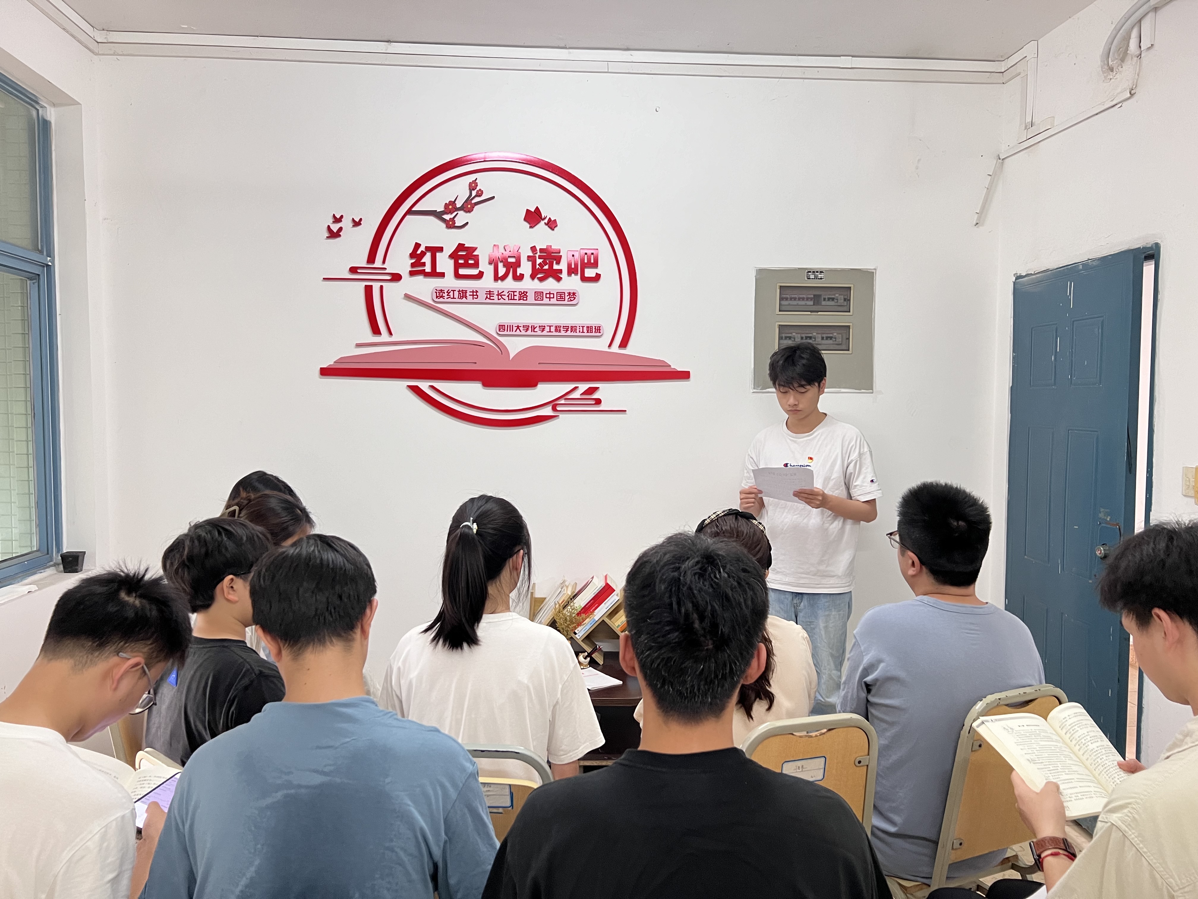 在学生寝室建立读书角——“红色悦读吧”,放置红色书籍供学生自由学习,定期开展共同学习活动,由学生党员领学,带领宿舍同学共同学习党的重要论著和会议精神,将理论学习融入学生日常。
